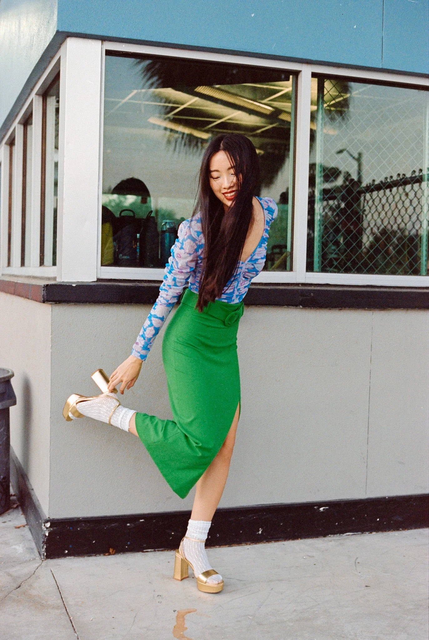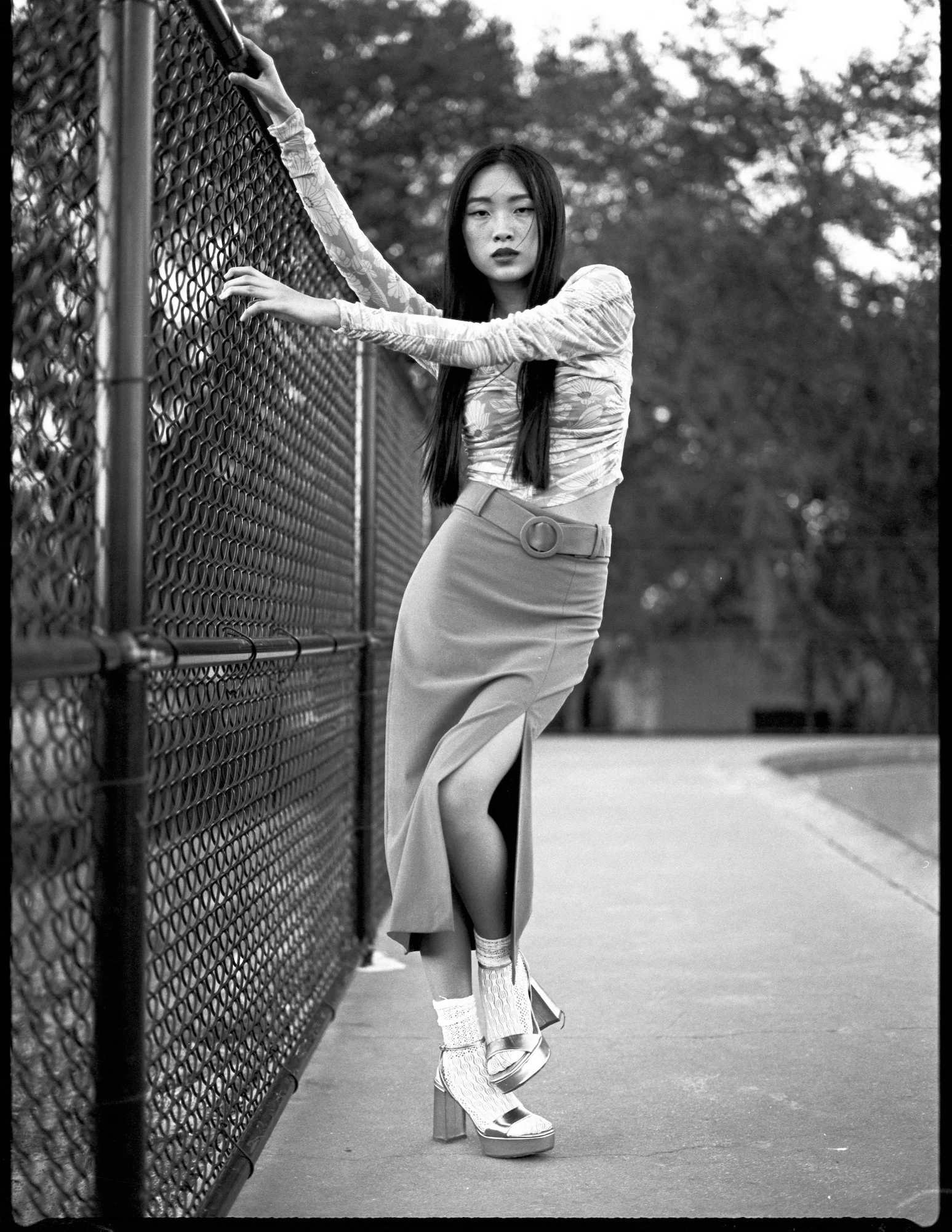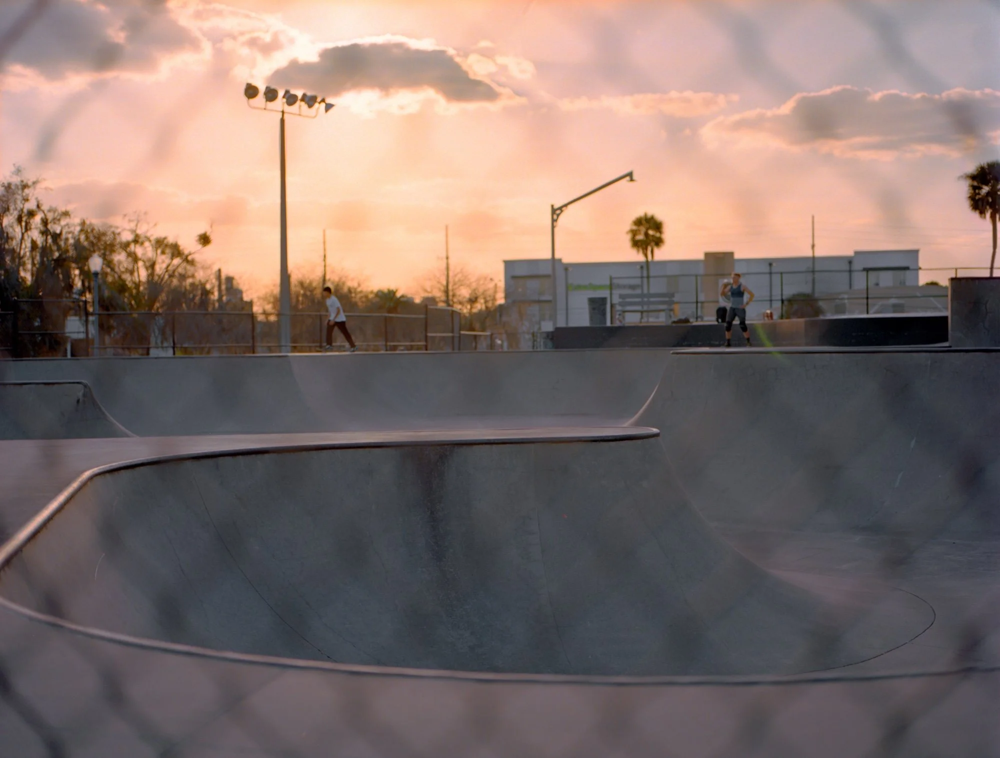 Boardwalk is an editorial shot on 120mm and 35mm film at a skate park in golden hour. We explored contrast: high fashion styling against raw concrete, warm film tones against urban geometry. The dynamic energy of the skate park gave the wardrobe an edge that a studio never could